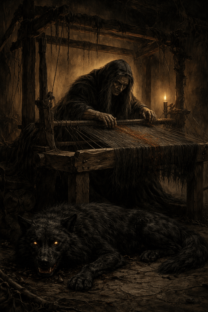 “You are free to go now,” said the hag, her voice softer than before, as if the weaving had drained what remained of her strength.